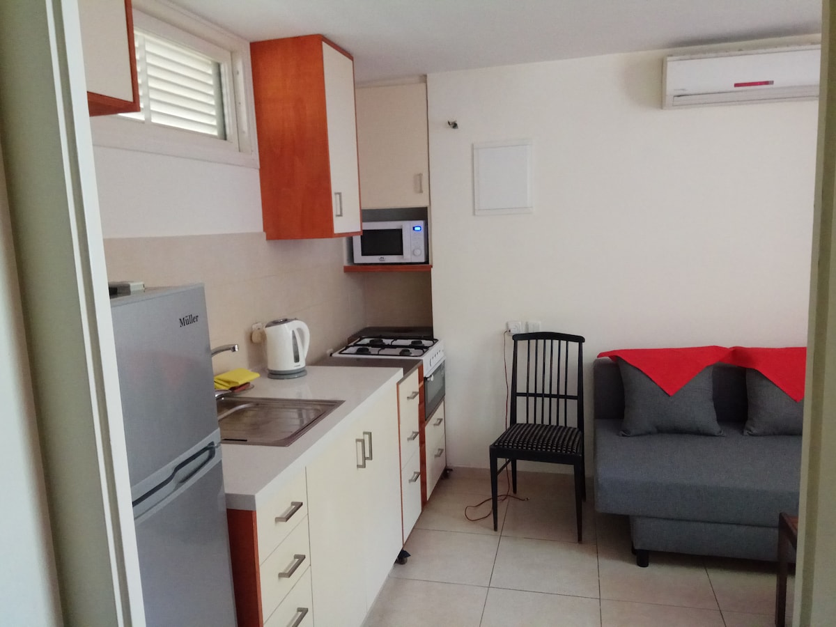 30 square meter studio apartment, including kitchen, refrigerator, cable TV, air-conditioning, double bed, sofa , toilet, and shower. 600 meters from the beach, has a pool with a separate entrance. Caesarea is one of the most beautiful places in Israel. it has some of the most magnificent sites in Israel, including Caesarea National Park, the Aquaduct Beach, and Ralli Museum.
