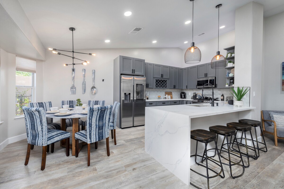 Freshly renovated Las Vegas home away from home with a resort pool oasis, custom fire pit gardens, new modern Clearwater jacuzzi with over 100 jets and water features for you to relax and enjoy, an outdoor kitchen BBQ patio area, and a fun outdoor game area! This single family home with a casita is located minutes from outdoor adventures, strip excitement, and beloved local attractions. Enjoy a relaxed modern Bohemian style with thoughtful touches to ensure a comfortable and memorable stay.