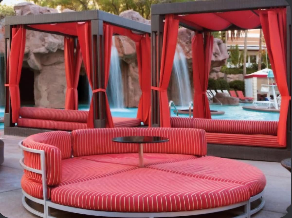 A Mediterranean-style vacation retreat just one mile from the Las Vegas Strip, the three towers offer exceptional views of the dazzling Las Vegas skyline, desert mountains, and the resort's lush courtyard. Lounge by the resort pool, pick up a coffee from the on-site Starbucks, or grab a bite to eat. Outside the resort, you can enjoy outdoor fun at picturesque locations like the Grand Canyon, Lake Mead, and Red Rock Canyon. Plus, catch the famous fountain show at the Bellagio.