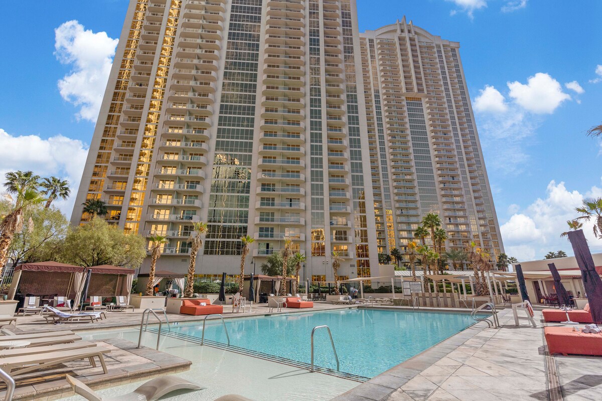 Experience luxury and tranquility at Skyline Serenity, a 22nd-floor high-rise retreat in the MGM Signature! Enjoy stunning Strip views and premium comfort, just steps from the excitement — but worlds away in vibe. - Private balcony with unforgettable skyline views, - Plush king bed + sleeper sofa, Smart TV, blazing-fast WiFi, - Fully equipped modern kitchen, - Heated pools, hot tubs, sauna, and shared gym, - Smoke-free, quiet environment, - Free valet and smart lock check-in.