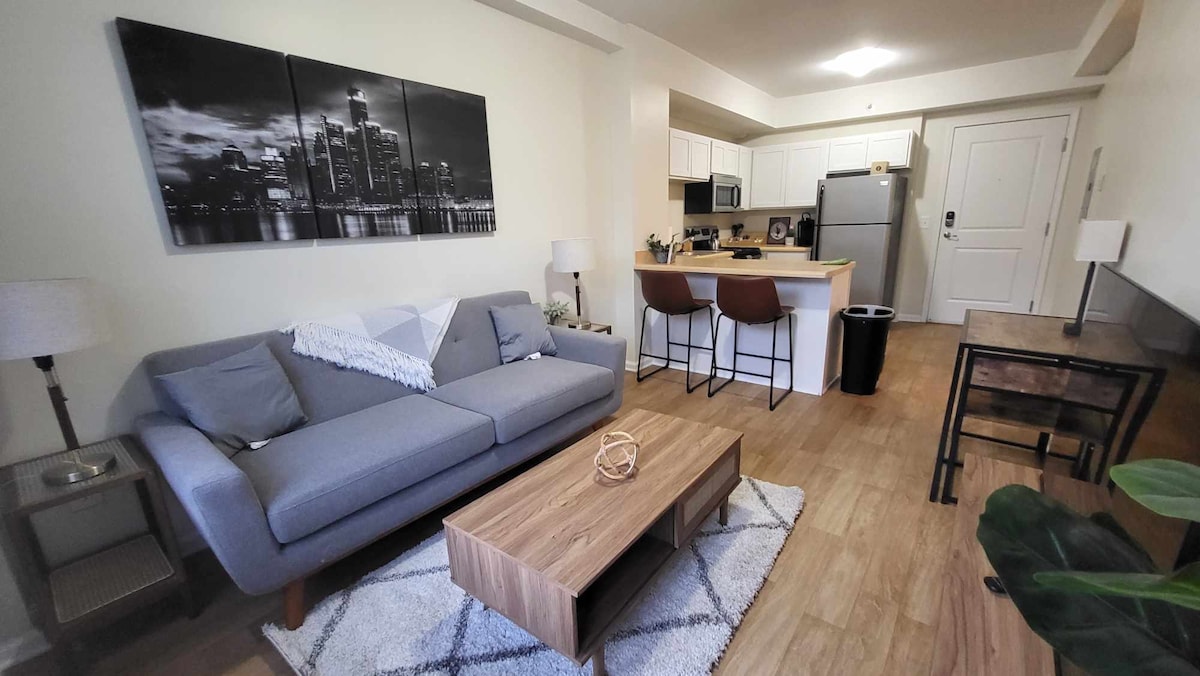 Walk Time(min): 4 - Little Caesars Arena 9 - Comerica Park 10 - Masonic Temple 12 - Fox Theatre 13 - Fillmore 13 - Majestic 14 - Ford Field 19 - Opera House 24 - Science Center 24 - Campus Martius 26 - DIA Respect and mindfulness of the owners who live in the building is an absolute must. Beautiful condo in Brush Park just outside of Downtown Detroit. 1 block off Woodward. You will have access to a beautiful space with almost everything you need for any length of stay.