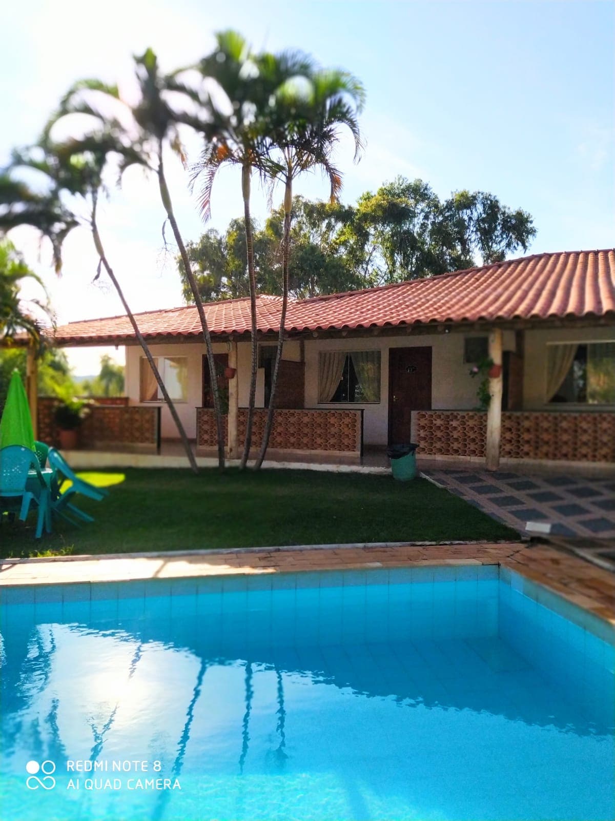 Sítio para 10 pessoas com 4 quartos, 2 camas queens, 1 cama de casal, 4 camas de solteiro, 2 banheiros, TV e jogos. Casa ventilada, livre de mofo, 45 min. de BH. Pergolado com redes, cadeiras de praia e ombrelones.