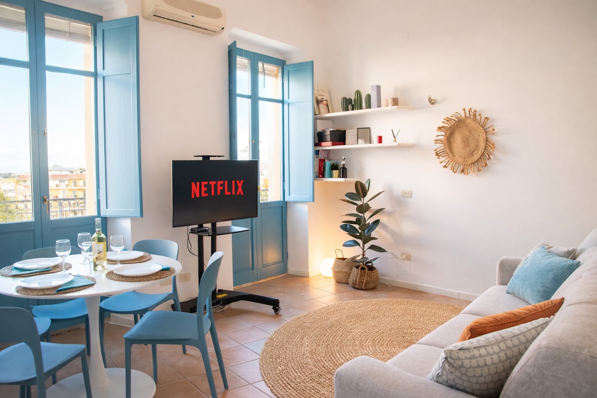 A modern, renovated apartment with an outdoor terrace awaits you! Base price for two guests, max 4 guests. In april 26 one room closed, price is for two people. Functional, spacious and with fiber optic internet, it is perfect for a vacation or workation. With its two bedrooms, two bathrooms, a kitchen-living room and a large terrace of 30 m², it offers maximum comfort for a group of friends or a small family. Very central but quiet, it is the perfect apartment to enjoy Cagliari in any season