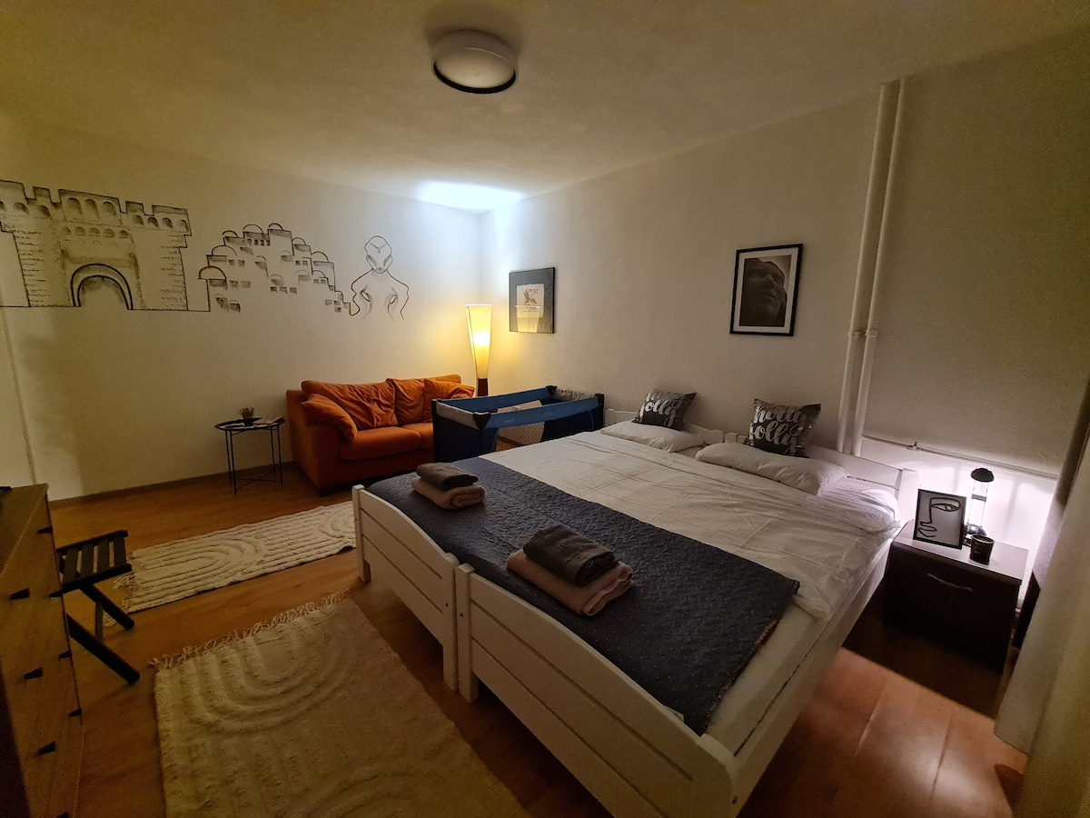 舒适的单间公寓,带厨房+小阳台