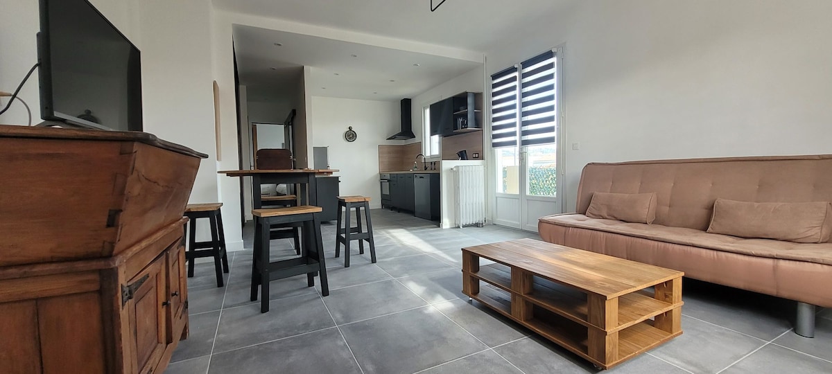 Beau 2 pièces dans haut de villa de 50M2 entièrement rénové au design tendance pour vous sentir dans l'air du temps. Balcon, entrée privative, parking sécurisé. Pour plus de convivialité, petit plus à votre disposition un Rez de jardin équipé d'un salon et barbecue. Idéalement situé dans une impasse calme, 5 mn à pieds des commerces, restaurants, cinéma, pistes cyclables, à 4Km des plages. Propriétaire sur place discret, à l'écoute, et disponible . Location destinée aux adultes .