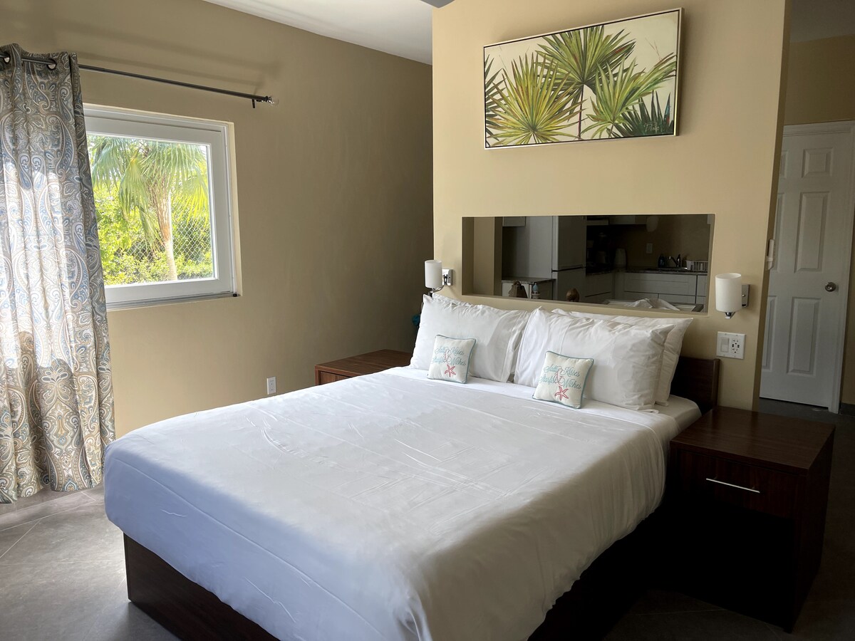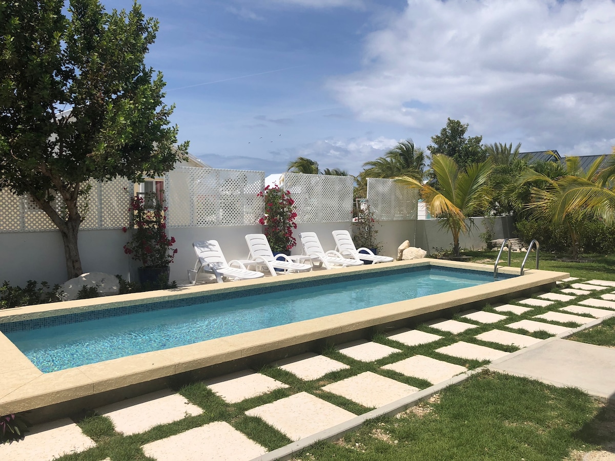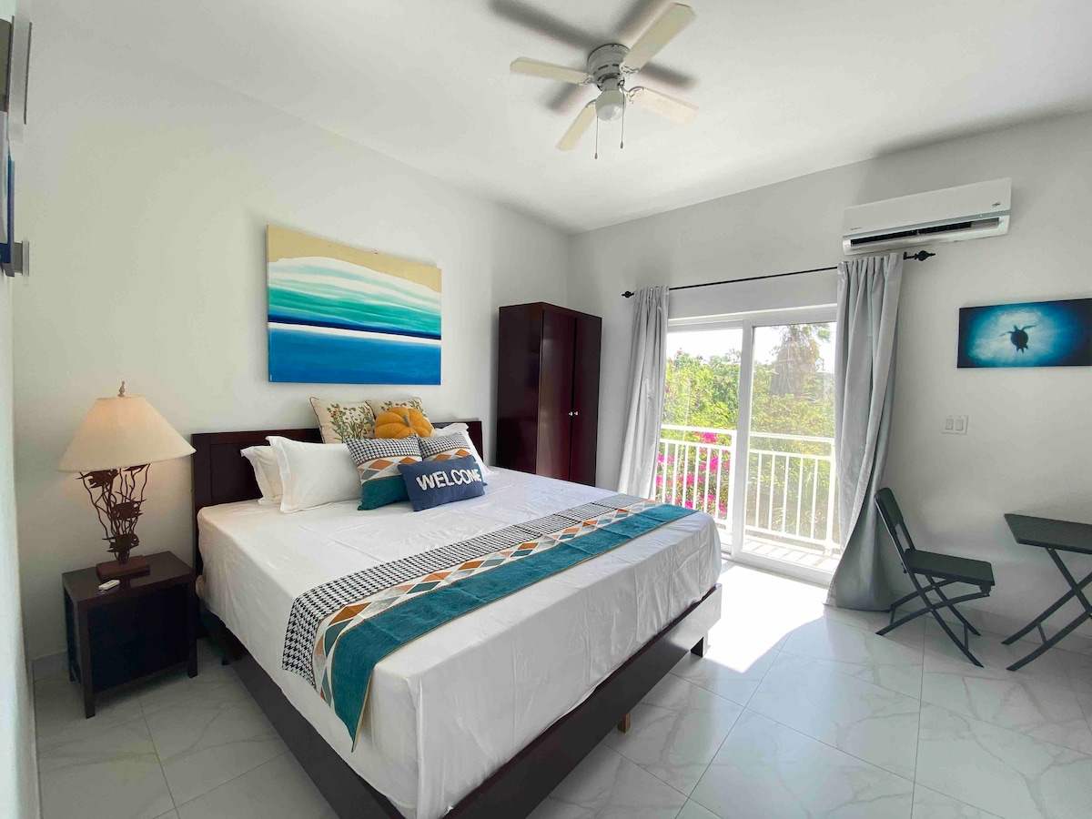 Villa Coco is situated among lush, tropical foliage. This upper studio style Unit is elegantly decorated and boasts a luxurious bedroom with a comfortable King sized bed, tasteful bathroom and a full kitchen with all necessities. Only 150 steps away from Grace Bay Beach, and just a 5 minutes stroll to the Grace Bay Strip, it is very desirable both for proximity and convenience. Bask in the outdoors from your own private balcony or lounge by the pool. Family vacation or couples, its perfect!