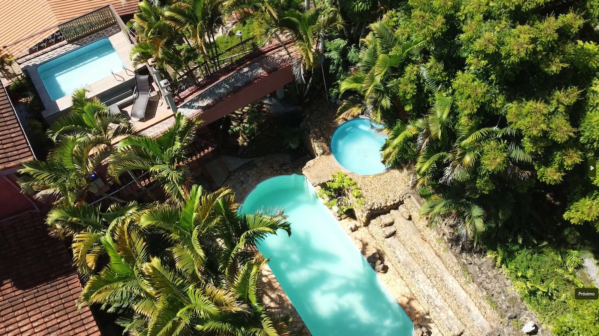 Divirta-se com toda a família neste lugar cheio de estilo. Café da manhã cortesia! A cabana Jacarandá conta com uma cama queen excelente para casal, e um super sofá cama para 2 pessoas também em tamanho queen. Tv 50 “ c/ muitos canais streaming, lareira interna, hidro p/ 2 pessoas com cromoterapia, cozinha completa, banheiro exclusivo grande. Internet de alta qualidade com 500 mbs. Terreno fechado com câmeras de segurança e portão eletrônico. Piscina com água mineral e uma floresta maravilhosa.
