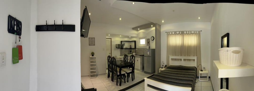 In the same house I offer 3 options: 1 Studio, 1 Apartment and 1 Efficiency. Each with independent access, completely private , comfortable and practical, safe and quiet, close to the sea. Bedrooms air-conditioned with Split, bathroom with hot water 24 h, equipped kitchen-dining room, outdoor terrace, use of green areas and portal of the house, private parking. Lodging at short, medium and long term (adjustable prices). There is WIFI. Photovoltaic system is available for energy backup. Bicycle.