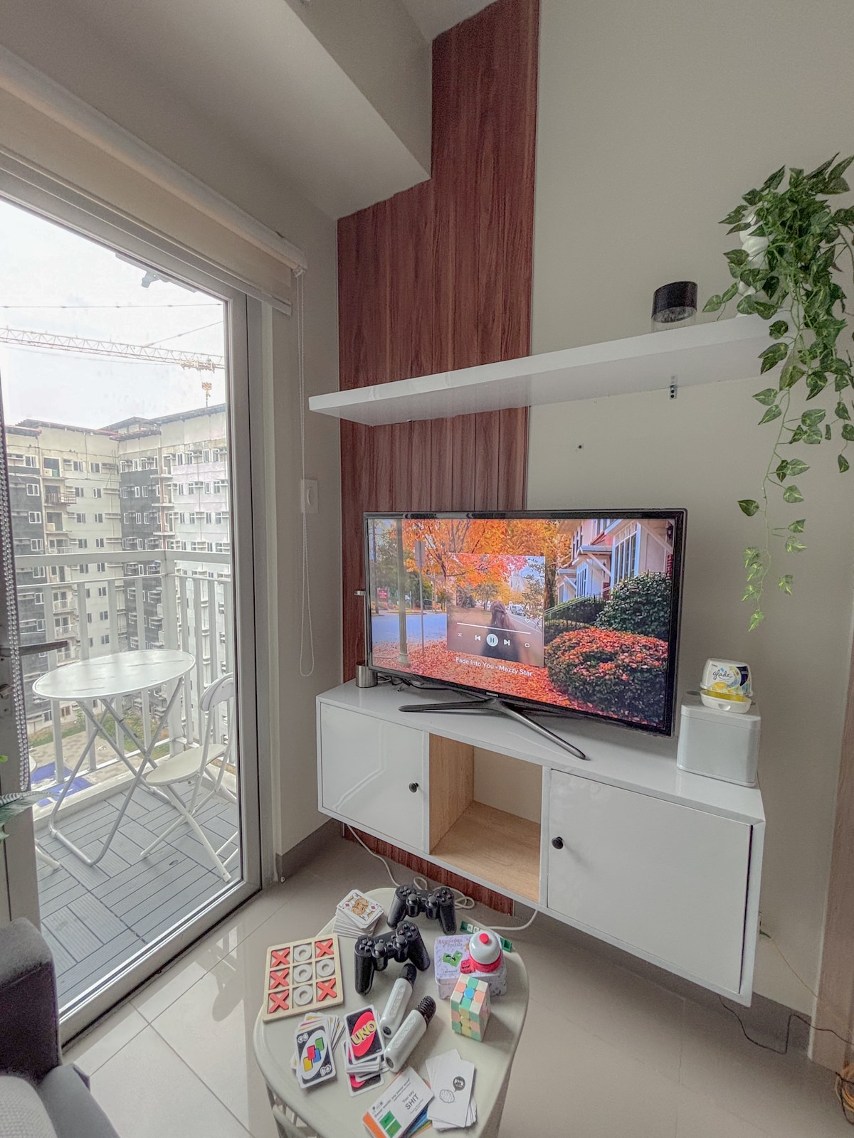 📍 Stylish 34sqm studio designed for comfort and convenience: Queen-sized bed Double-size airbed 65” Google TV, PS4 Pro, and board games Fully equipped kitchen and dining area Modern lighting and built-in outlets 🏖 Amenities: FREE pool access Fitness gym Basketball court Jogging trail Secure paid parking & 24/7 security 🧴 Guest Kit Provided: Dental kit Round soap Slippers Bath towel ⚠️Note: Tissue and dishwashing liquid are not included. 🔑 Hassle free self check-in and check-out.