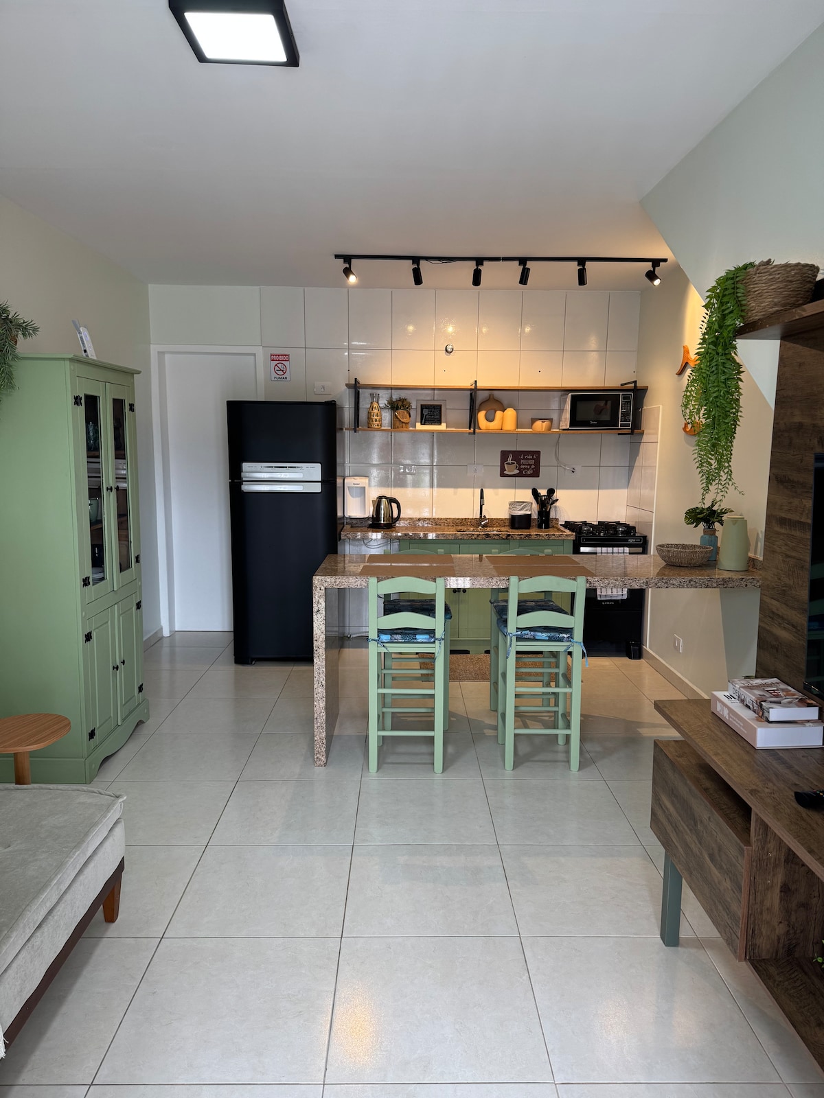 Apartamento mobiliado no 1º andar, aconchegante, com ambientes integrados e ótima ventilação. A localização é o diferencial! Apenas 500 metros da Praia Brava, próximo de padaria, farmácia e mercado. Ar-condicionado e Wi-Fi de boa qualidade. Contendo: Quarto - 1 cama queen, - 2 colchões de solteiro Sala - 1 sofá-cama para 2 pessoas Cozinha - completa e com todos utensílios básicos. Garagem - 1 carro *Observação* Não disponibilizamos roupas de cama e toalhas de banho.