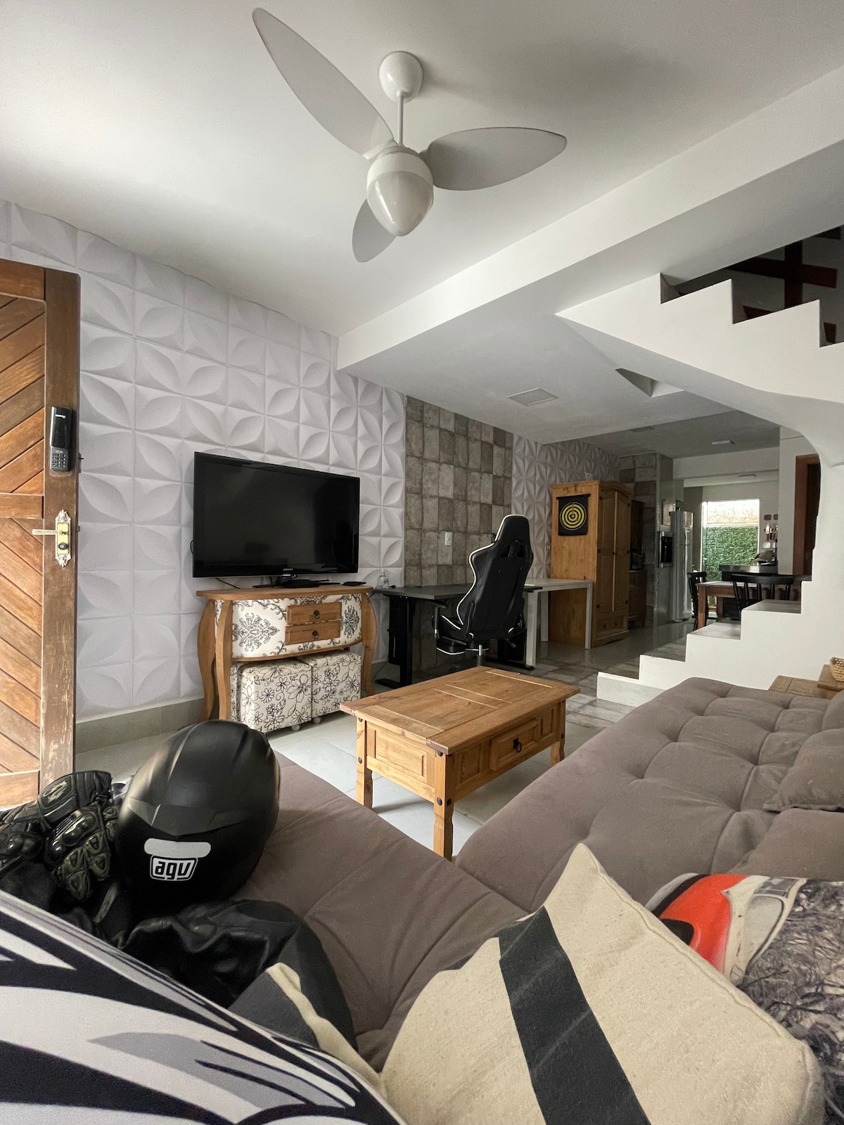 Sua família vai estar perto de tudo ao ficar neste lugar bem-localizado. Garagem espaçosa com portão eletrônico. Próximo ao mar (250 metros) e da praça central ( 200 metros), este apartamento é ideal para duas pessoas, mas também contém sofá cama mais um colchão de solteiro. Dispõe de WiFi de alta velocidade e está todo reformado. Tudo muito limpo e organizado