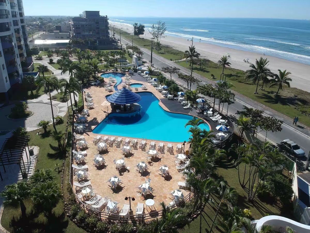 Ideal para famílias: Apartamento beira-mar, bem equipado, quartos com ar-condicionado, churrasqueira interna (apartamento) e externas (quiosques que poderá ser reservado com aviso antecipado), área de lazer, sala de jogos (sinuca, pebolim, tênis de mesa), sala de televisão, brinquedoteca, academia, quadra de bocha, quadra de paddle tennis, quadra de futebol de areia, quadra de vôlei de areia, beach tennis, piscina para adultos e crianças.