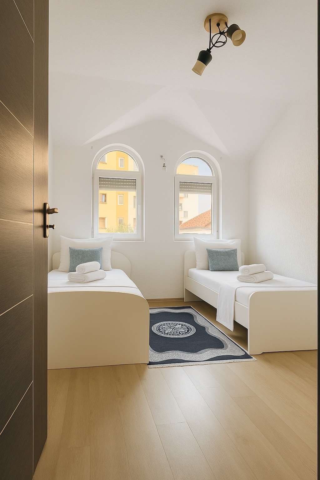 Welcome to Su Apartment! Explore our spacious and modern apartment, situated in a vibrant part of Skopje, in just a short walk away you'll find local cafes, shops, restaurants, but also tourist attractions, like the Skopje Aquaduct or the Old Bazaar, offering both the peace of home and the excitement of exploring new places. There is free parking right in front of the building, the neighborhood is known for its accessibility and friendly community, adding an extra layer of comfort to your stay.