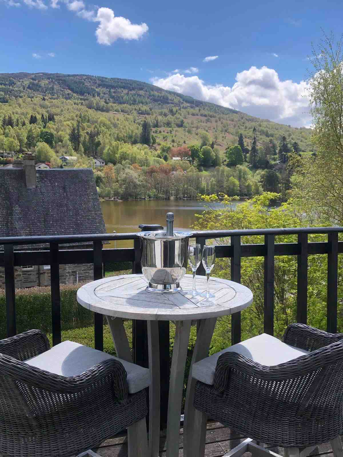 Spacious riverside cottage 2 miles outside Crieff, stunning south facing and decked balcony over the river. Situated within the grounds of Victorian private house. Recently refurbished with spectacular views across fields. Includes 1800cm superking bed, bath and shower. Perfectly situated for exploring and only 10/20 mins from the only two 2* Michelin restaurants in Scotland. We now also have an outside bath house in the garden where you can lie back and enjoy the views beside the river.