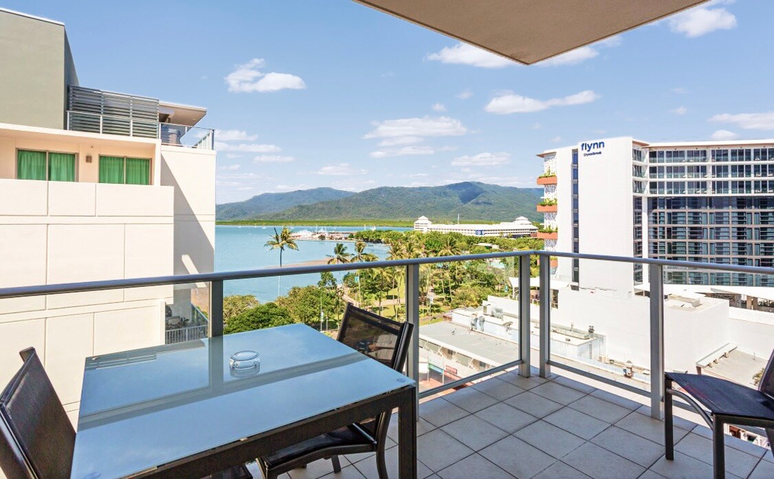 Fabulous waterfront LOCATION with stunning views of the Coral Sea, Cairns Esplanade and LOCATED above the night markets. Positioned on the 5th level in the very heart of Cairns city where you can conveniently walk everywhere within a couple of minutes, markets, great restaurants & shopping. Walk across the park to the jetty for all the reef tours or you may prefer to just relax on the balcony and watch the world go by. YOu will enjoy endless relaxation.