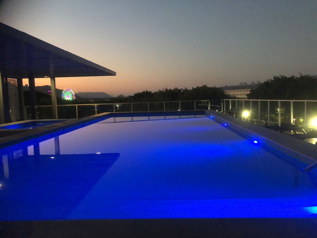 Located in the heart of Cairns CBD this one apartment is opposite Woolworths and Commonwealth Bank. Love eating well there’s a large food court serving, Thai, Korean, Phillipino and Japanese or take a short stroll to the Esplanade. ✅Netflix ✅Free Parking ✅Washing Machine & Dryer A kitchenette to cook up breakfast or a main meal. The pool is cold enough for those summer swims and there is a bbq onsite.