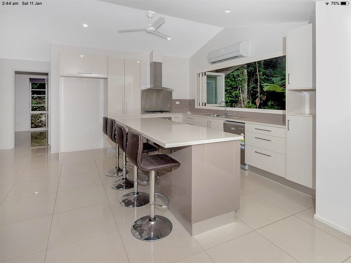 There are three apartments on the property .Very quiet place ,you can hear the birds ,chimes,water fall and the wind . Pool is amazing in the afternoon with a cold drink. I try and keep it pretty cool in the summer months If you like to enjoy relaxingholidays I think you have the right place in the suburbs of cairns ,10 minutes away from town.Freshwater creek, shops,bus stop and restaurants nearby.Bowls club ,Pizza and coffee 6minutes walk .We have two JackRussells dogs that live on the property