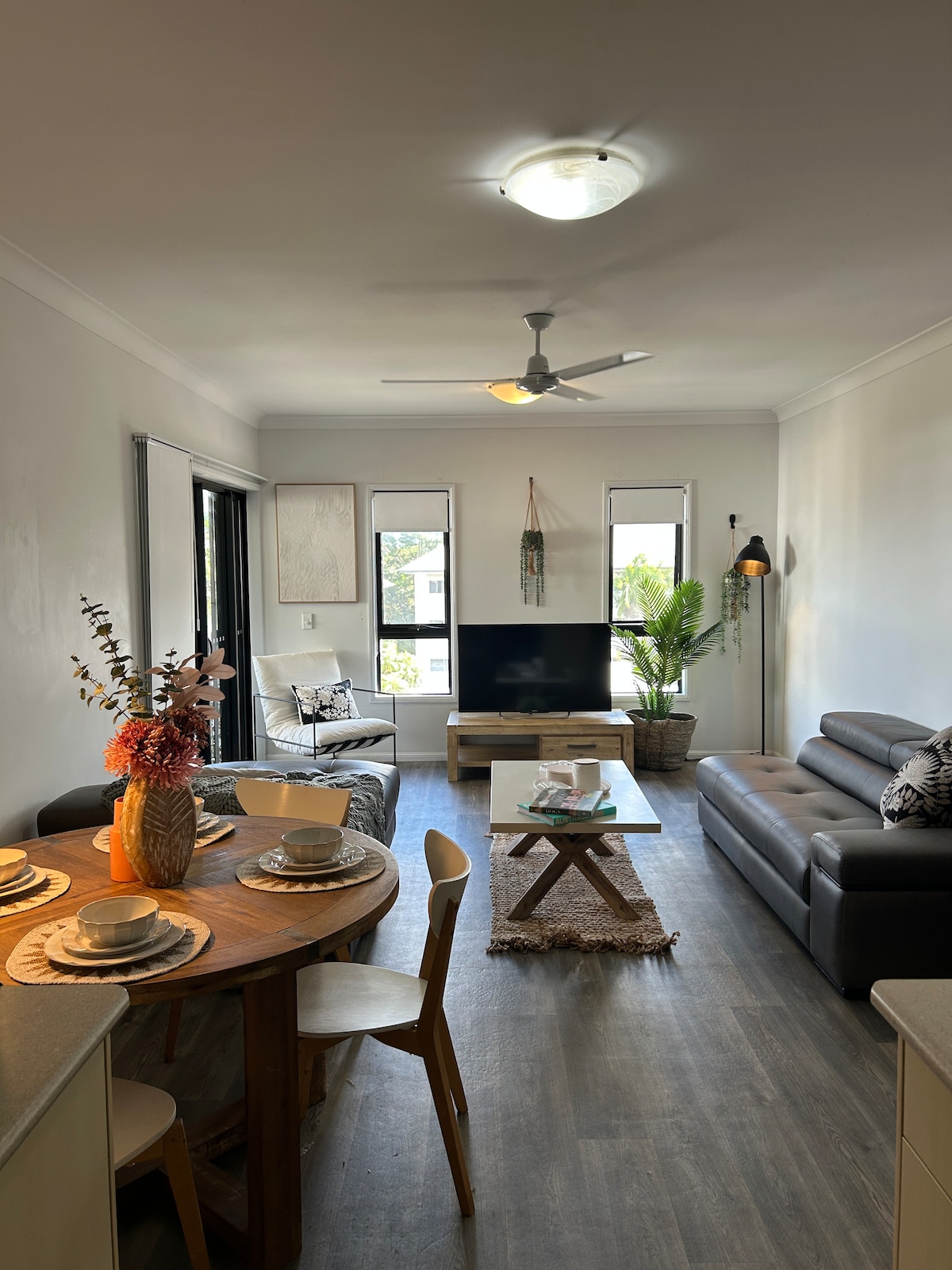 Come and relax in our beachfront retreat. This spacious self contained apartment includes a combined kitchen, living and dining room with beachviews. Two queen size bedrooms (one with additonal single bed), modern twoway bathroom and a shared laundry facility for your convenience. Perfect for a couples sneaky weekend away or perfect for a family fun holiday. Enjoy a stroll on the beach, roam around our beautiful gardens or a splash in our large infinity pool. Relax, unwind, recharge!