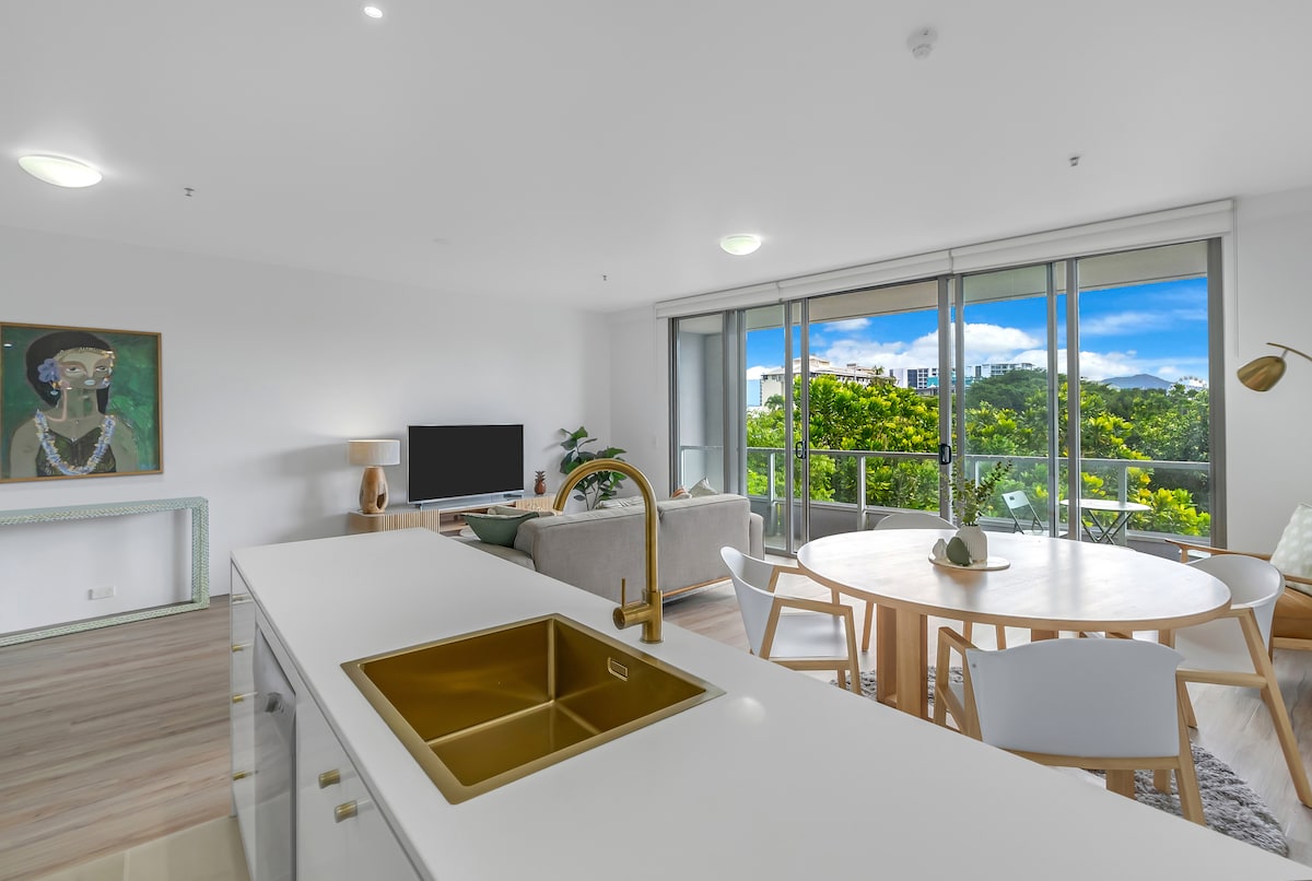 🌴Welcome to The Green Place, a peaceful 2-bedroom retreat with a private balcony overlooking the botanical gardens’ treetop canopy. Set within a tropical resort complex, this spacious apartment feels private, calm and made for slowing down. 🏡Enjoy free Wi-Fi, air-con, 4 pools, tennis court, workout space, full kitchen, laundry and undercover parking. Flexible bedding available: 🛏️ Bedroom: 1 king or 2 singles 🛏️ Second bedroom: 1 king
