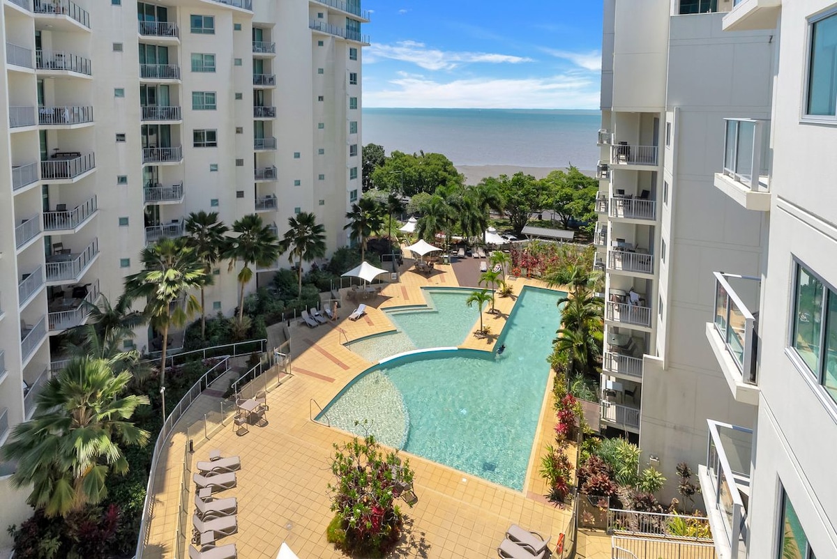 Fabulous waterfront LOCATION with stunning views of the Coral Sea, Cairns Esplanade and LOCATED above the night markets. Positioned on the 5th level in the very heart of Cairns city where you can conveniently walk everywhere within a couple of minutes, markets, great restaurants & shopping. Walk across the park to the jetty for all the reef tours or you may prefer to just relax on the balcony and watch the world go by. YOu will enjoy endless relaxation.