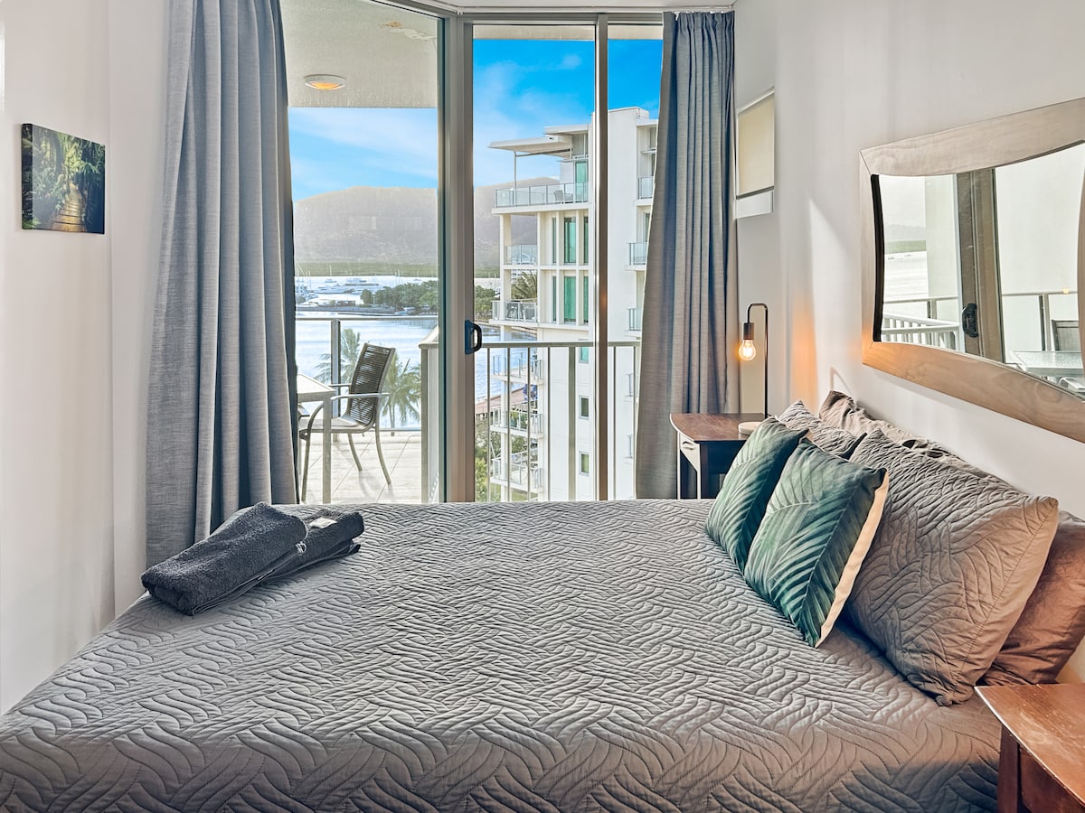 Fabulous waterfront LOCATION with stunning views of the Coral Sea, Cairns Esplanade and LOCATED above the night markets. Positioned on the 5th level in the very heart of Cairns city where you can conveniently walk everywhere within a couple of minutes, markets, great restaurants & shopping. Walk across the park to the jetty for all the reef tours or you may prefer to just relax on the balcony and watch the world go by. YOu will enjoy endless relaxation.