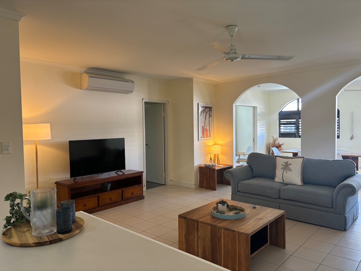 *Super Special 2 bedroom 2 bathroom Apartment** *Free Wifi *Choice of either 2 x king or 1 king and 2 singles *Free parking on-site *5 min stroll to Palm cove beach *Fully self contained, kitchen, laundry, cook top, oven dishwasher, dryer *Large and Spacious open plan *use of 4 pools including 50 metre lap pool and child friendly pool *on-site tour desk *lush tropical grounds 2.5 acres *on-site BBQ Please note the apartment is not serviced during you stay.