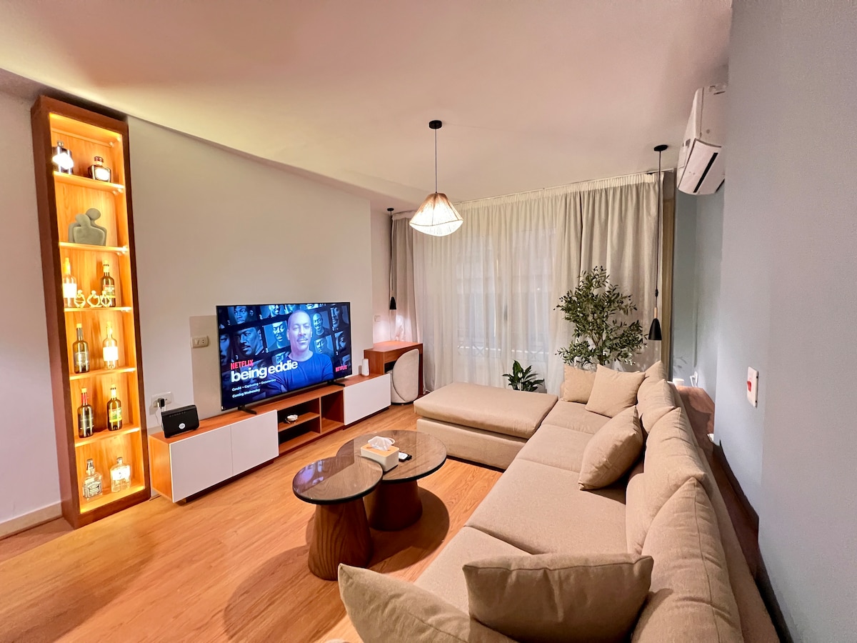 Stay in the heart of Giza with breathtaking views of the Pyramids and the Grand Egyptian Museum, visible right from your balcony. Located on a high floor, the apartment is quiet and peaceful, with modern design blended beautifully with ancient touches. The building has two elevators, and downstairs you’ll find a hypermarket, bakery, and groceries. Easy to reach and close to all major attractions, this is the perfect mix of comfort, history, and convenience.