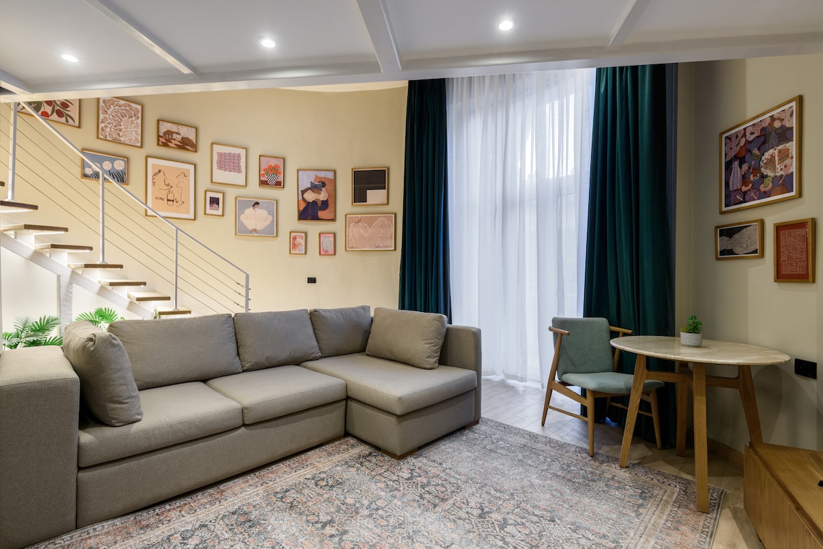 Welcome to your stunning Downtown Cairo Loft, where style meets comfort in the heart of the city’s vibrant historical district. The beautifully designed two-level loft offers a seamless blend of contemporary aesthetics and homey charm, providing the perfect urban retreat for leisure and business travellers alike.