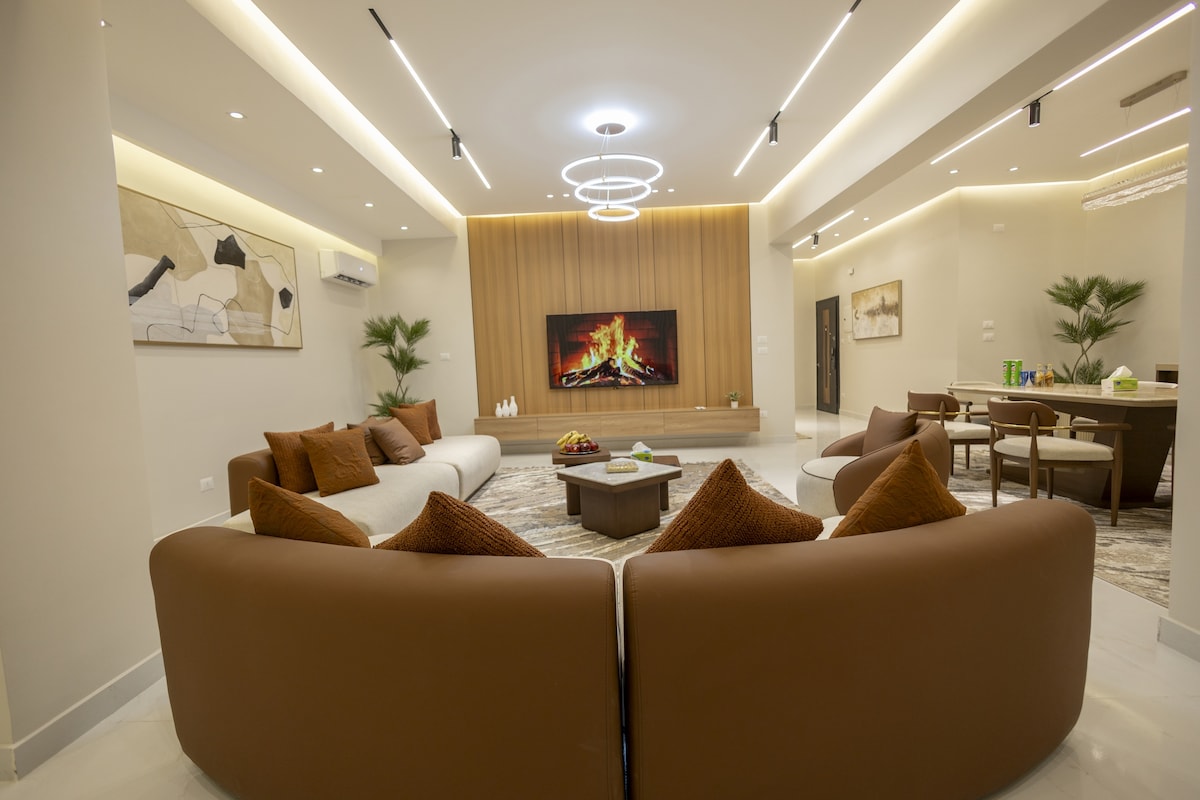 شقة مودرن فاخرة 4 غرف نوم و3 حمّامات في قلب مدينة نصر – مكرم عبيد، على بُعد دقائق من City Stars Mall وCity Centre Almaza. الشقة واسعة ونظيفة جدًا، ريسيبشن كبير بإضاءة حديثة، مطبخ مجهز بالكامل، إنترنت فايبر فائق السرعة (High-Speed WiFi) مناسب للعمل أونلاين، وتكييف في جميع الغرف. توفّر خصوصية كاملة، دخول آمن بـ Smart Lock، وموقع مركزي قريب من المطاعم، الكافيهات، المستشفيات والخدمات الحيوية. مناسبة للعائلات والمجموعات مع الالتزام بقواعد المكان، لإقامة مريحة وآمنة طوال فترة الإقامة