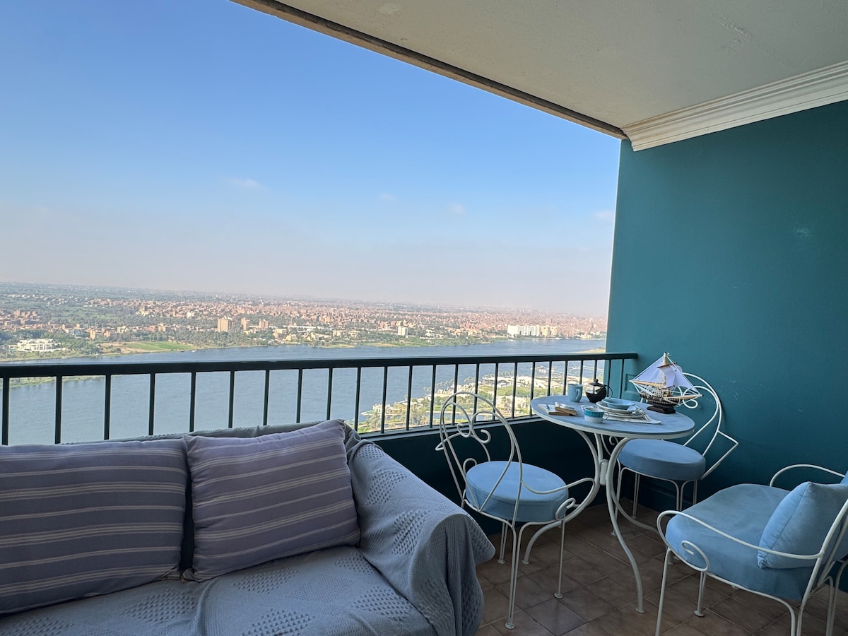 A spacious first-row 4-bedroom / 2-bathrooms apartment with direct panoramic Nile views, located in the heart of Cairo directly on a famous Nile-front road, expect beautiful views and easy access to everything. Perfect for friends , business travelers, families and groups seeking comfort, luxury and an authentic Cairo experience.