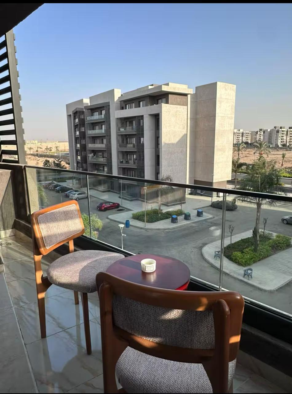 A private apartment in the most prestigious areas of the Fifth Settlement in New Cairo, a full bedroom, a large bed, a wardrobe, a reception, an American kitchen, a bathroom, the apartment is covered with Wi-Fi, and it has a private garden with a large grill and an umbrella, and the apartment is in a privileged location with easy access to any area within Cairo
