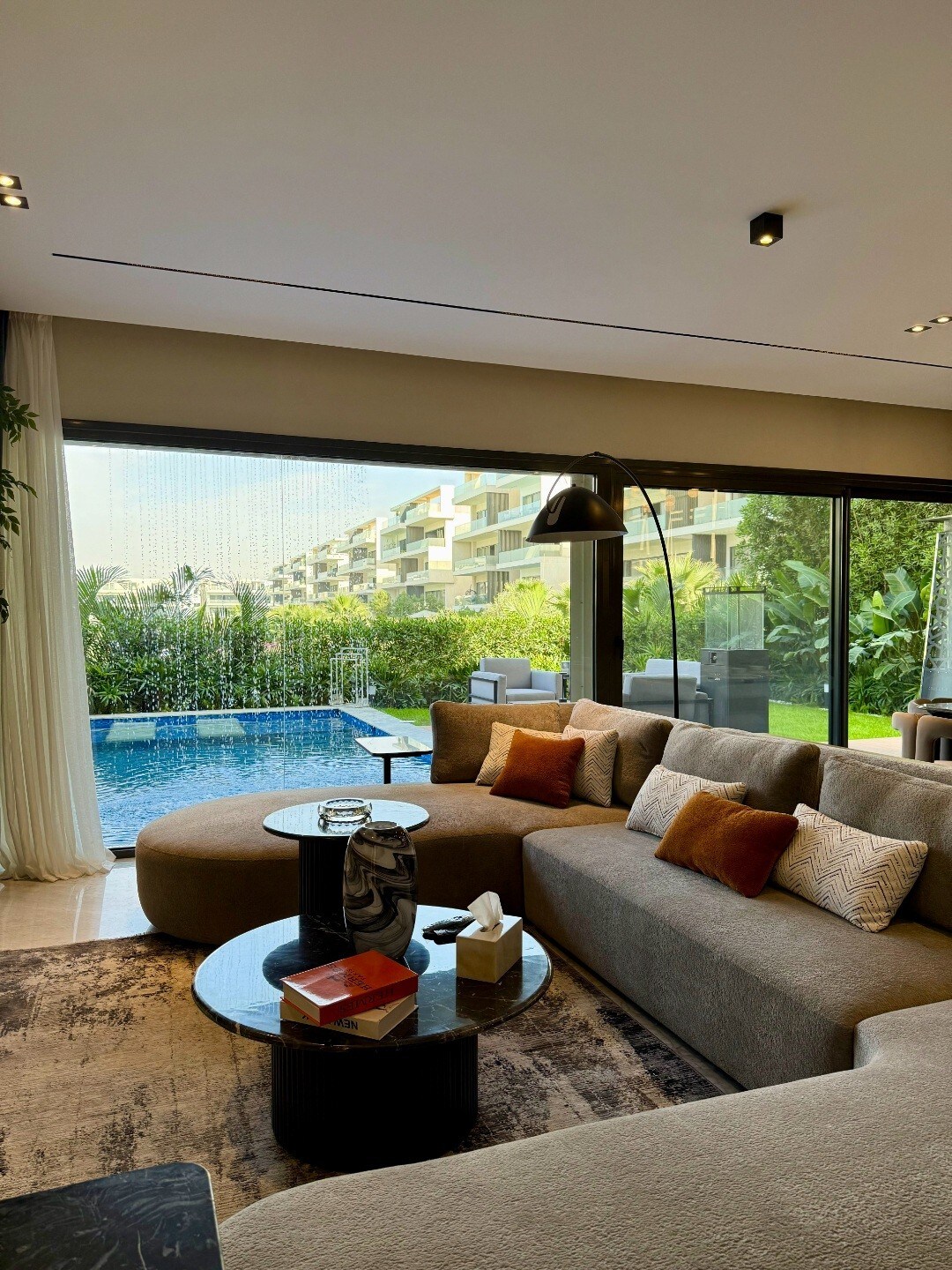 Escape to this modern, high-end villa in the exclusive Katameya Dunes compound. Perfect for families and groups, it features 4 master bedrooms, a private pool, and a fully equipped gym. Enjoy elegant interiors, high-speed WiFi, and 24/7 security in a serene setting. Located near a world-class golf course, this villa offers the ultimate blend of luxury and comfort. Book now for an unforgettable stay! We accept families only. Or groups of the same gender