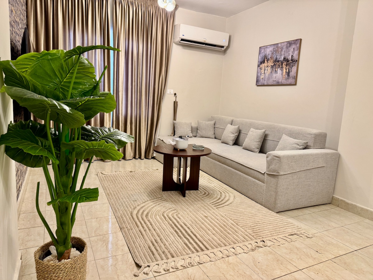 “Family House” – Luxurious 2nd-Floor Studio in New Cairo Located in the prestigious 1st Settlement, this stylish studio offers convenience and comfort. Just 5 minutes walking to a hypermarket and restaurants, 5 minutes by car to Cairo Festival City Mall, and 15 minutes to Cairo International Airport. Enjoy fiber-optic WiFi, a 55-inch smart TV, and two air conditioning units for year-round comfort.
