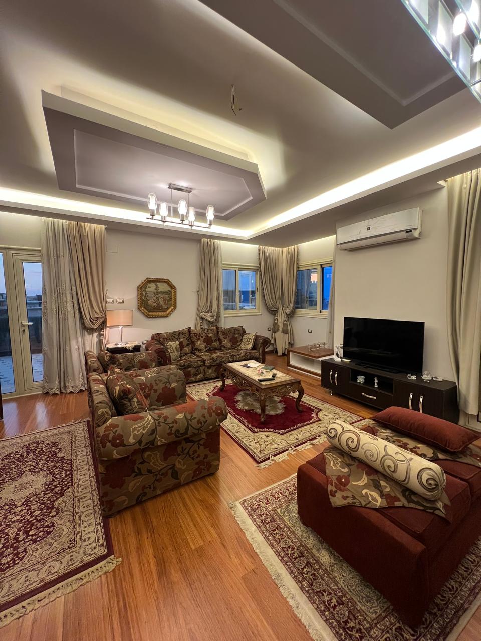 Welcome to your home away from home in the heart of New Cairo! This newly furnished, modern two-bedroom apartment offers a comfortable and convenient stay for up to four guests. Amenities include: • High-speed Wi-Fi • Hot water  • Air conditioning in all rooms  • Smart TV with Netflix  • Washing machine