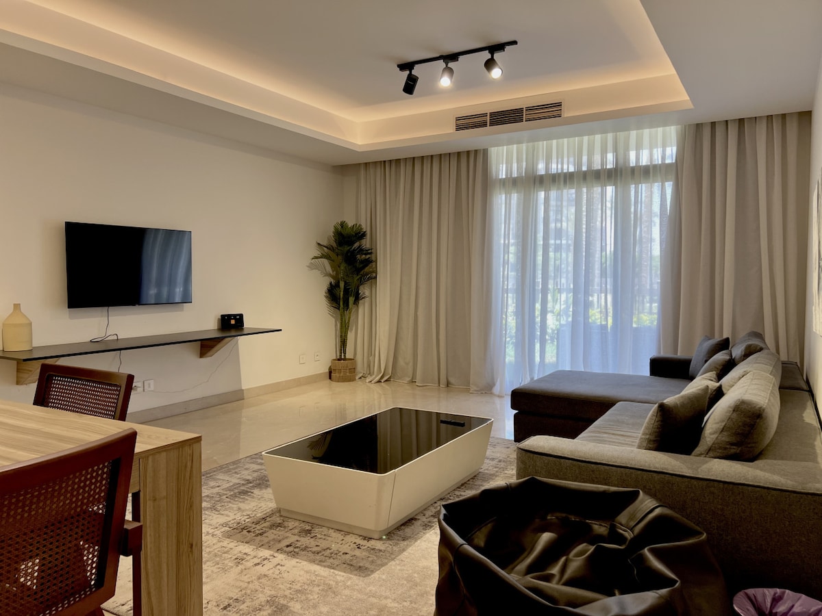 Cet élégant et spacieux appartement 2BR est entièrement meublé et équipé. Il se situe dans une résidence de haut standing dans l'un des endroits les plus populaires du Nouveau Caire. Parfait pour une famille ou un groupe d’amis, vous vous sentirez comme à la maison. Nous mettons à disposition tout ce dont vous avez besoin pour vous assurer un confort optimal à votre arrivée et rendre ainsi votre séjour agréable. A deux pas de l'appartement : un supermarché ouvert 24/24h, Starbuck, Papa Johns.