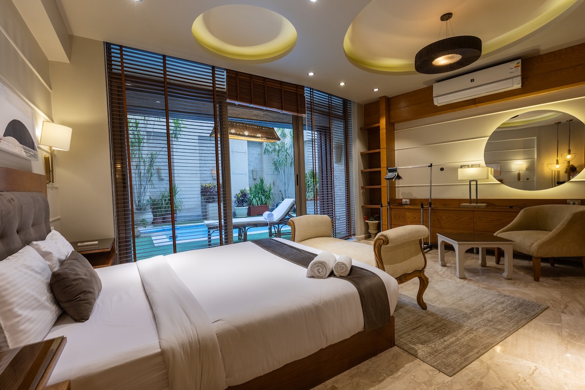 This 1-Bedroom + Guest Room apartment is a hidden gem, featuring a private swimming pool surrounded by lush gardens. Ideal for relaxation, the pool area offers total luxury & tranquility. The modern, fully-equipped apartment includes spacious bedrooms, a bright living area, & a fully stocked kitchenette. With air conditioning, Wi-Fi, & smart TV, it has everything you need for a comfortable stay. Due to high demand, availability is rare; book now before it’s gone!