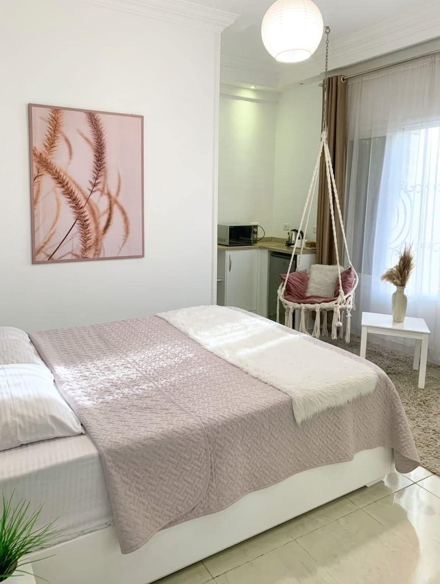 The Free Spirit’s Escape — a boho-inspired StayBee hive filled with texture, color, and soft light. Enjoy a luxury bathtub with city views, a private bathroom, minibar, Smart TV, coffee maker & kettle, air-conditioning, and fast Wi-Fi. ✔ 24/7 self check-in ✔ Hotel-quality linen ✔ Daily cleaning available ✔ Quiet room despite central location ✔ Fast Wi-Fi (200 Mbps) 📍 Prime Downtown Cairo • steps to the Egyptian Museum • Walking distance to restaurants • 30 mins to the Pyramids & AirPort