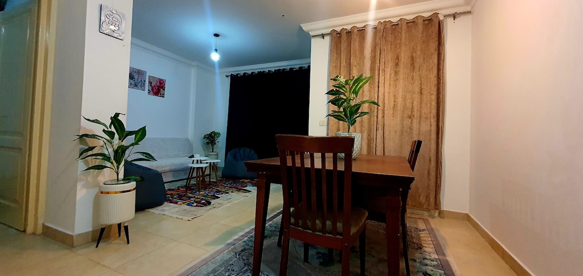 This special place is close to everything, 5minutes to all new cairo universties , new cairo city town center, services area And medical care centrs, 15 minutes to cairo air port , a safe and secured place with all stay requiremnts ,air condtioned and heater , high speed internet , with open air space sunny area . 2 adults & up to 4 yrs kid.Home delivery is for many local and international food restarurants,near food court mall.lundry service delivery avilable, easy reach by Uber/Careem.
