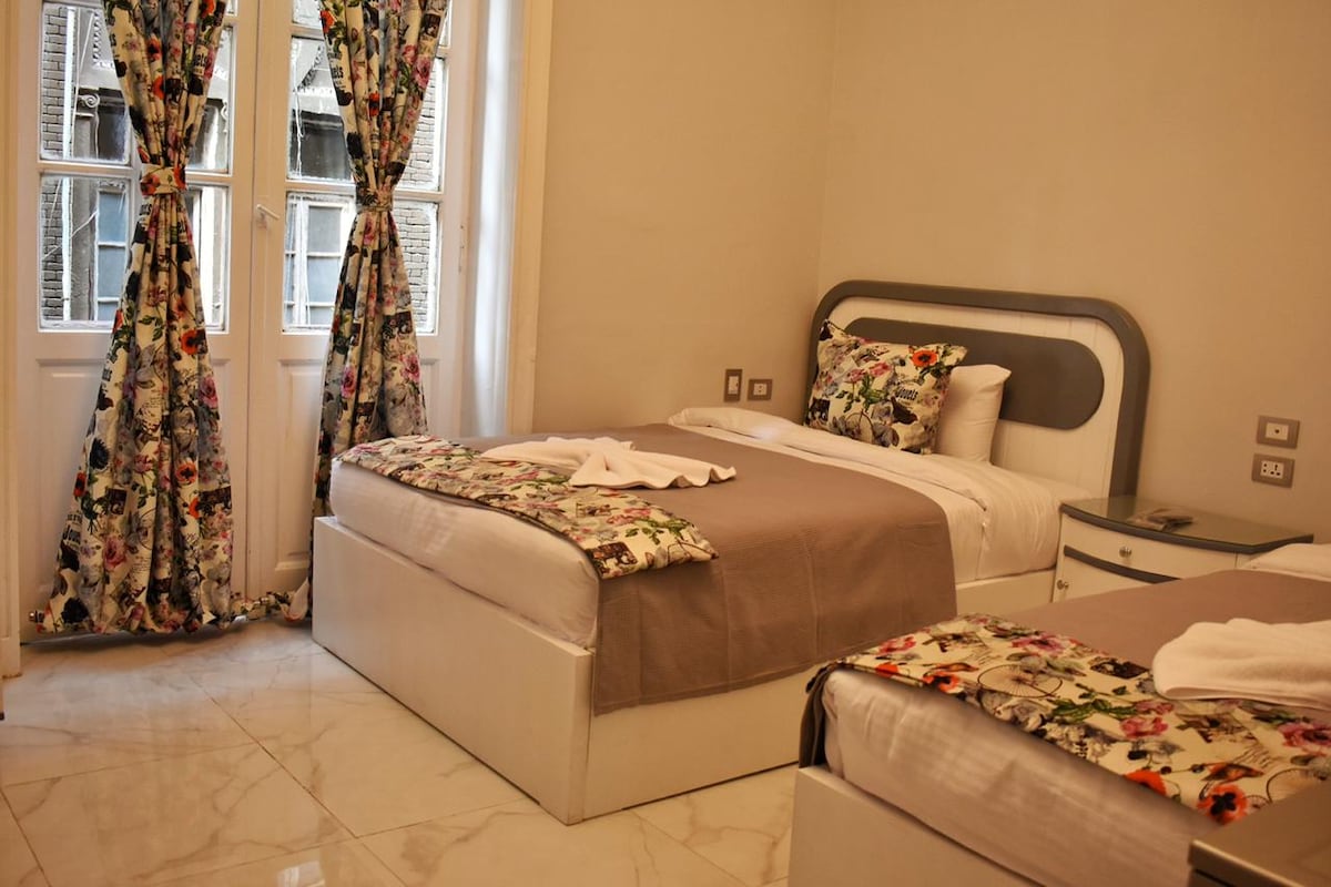 غرفة مريحة تحتوي على سريرين منفصلين داخل شقة بطابع مصري كلاسيكي في قلب وسط البلد بالقاهرة. الغرفة جزء من شقة مكونة من غرفتين، ويشترك الضيوف في استخدام حمّامين، مطبخ متكامل، وليفينج روم واسعة المكان هادئ ومناسب سواء كنت للعمل او السياحة، وقريب من المتحف المصري، ميدان التحرير، والمقاهي والمطاعم التاريخية، لتجربة إقامة أصيلة ومريحة في قلب القاهرة.