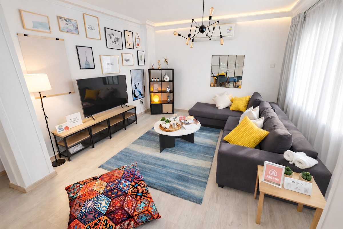 This spacious apartment is fully furnished and equipped with everything you need for a comfortable stay. Relax and watch your favorite movies and TV shows on the sound system with access to Netflix, beIN Sports, Shahid, Watch it, and Starzplay. Located in a central location, close to all the major attractions. Just a short walk for bus station , the shops, and the restaurants. Whether you're traveling for business or pleasure, this modern, stylish apartment is the perfect place to stay.