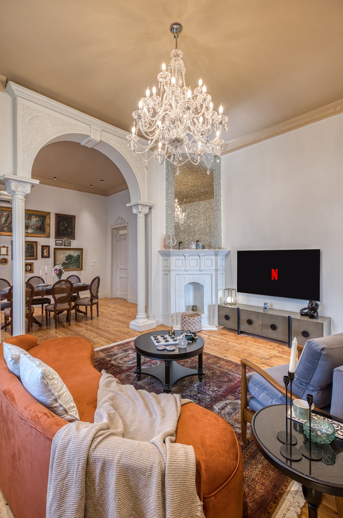 Located in the Sakakini historical building! Nested in the heart of Cairo, places you just steps away from vibrant markets, trendy cafés, and some of the city’s most iconic landmarks. 🏛️ 5' minutes to the Egyptian Museum/ Tahrir square 🚇 5' minutes walk to Metro Station ✈️20' minutes to New Cairo/ Airport 🛕20' minutes to the Pyramids Natural light streaming through 3 large, sunny panoramic balconies and 7 panoramic colored windows.