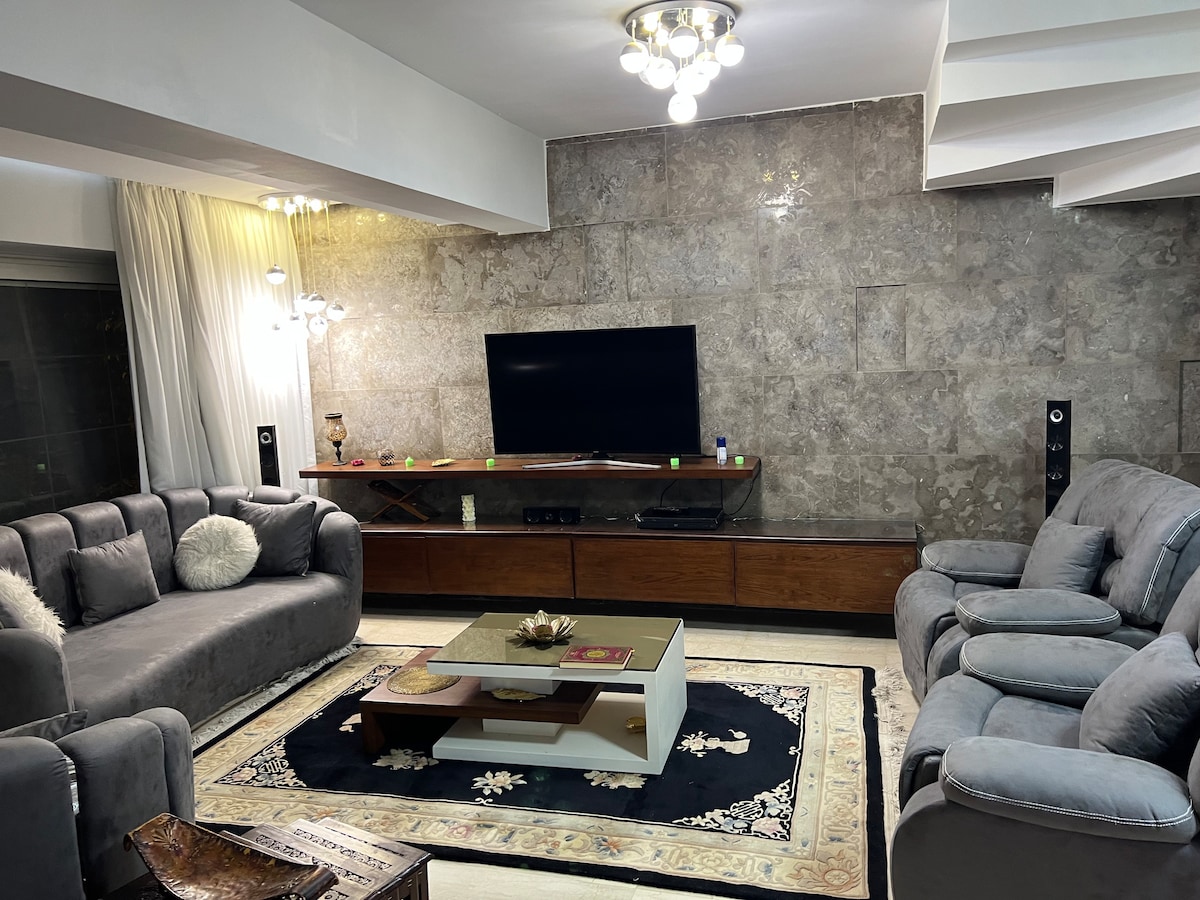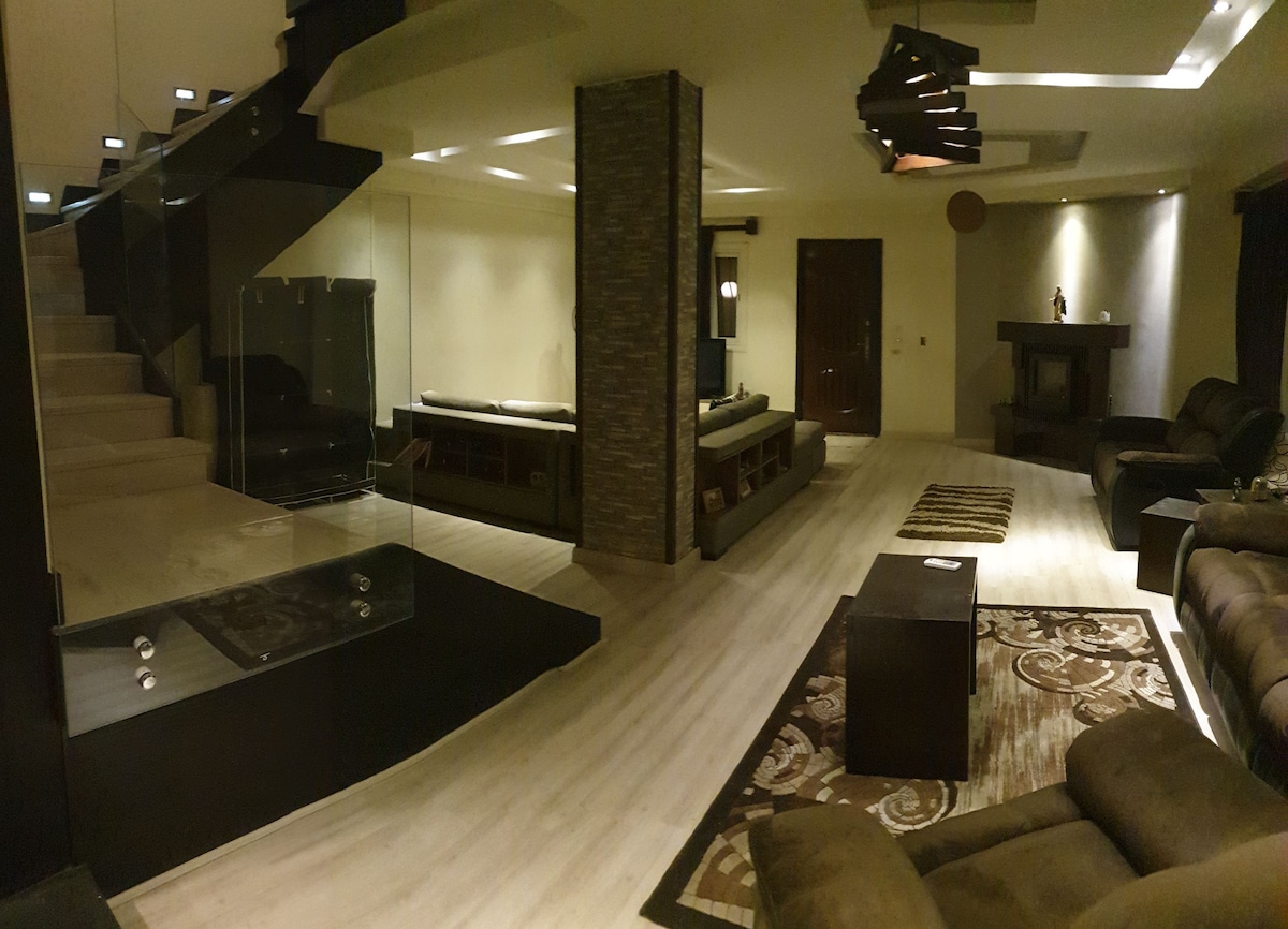 Elegant and comfortable house in new Cairo. The 3 floors house will give you a nice space for you and your family. 3 bed rooms, each one with private toilet, 3 TV’s.