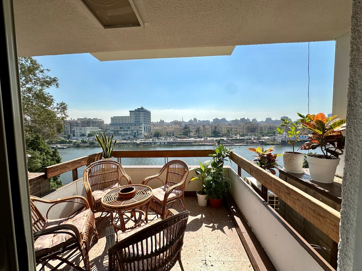 Welcome to our Nileview loft, Your charming home in the heart of Zamalek Island, Cairo's most central, safe, and vibrant hub. The stylish living room boasts a 55-inch curved smart TV and panoramic views on the Nile. A boho living room with a bamboo swing overlooks a gorgeous Nile view. Two cozy bedrooms featuring memory foam mattresses, hotel-grade Egyptian cotton beddings. Relax in comfort and style with a touch of bohemian charm by the Nile."