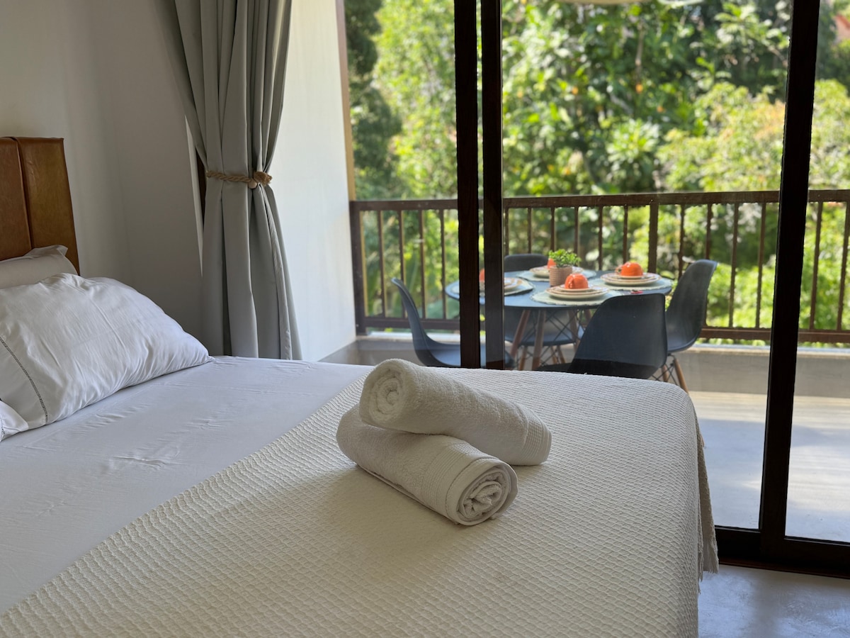 No alto do Morro de São Paulo, o Canto das Águas é um refúgio com vista para o mar e o pôr do sol de tirar o fôlego. Da praça central até aqui é uma caminhada de 15–20 min (1km), com algumas ladeiras e degraus. A recompensa é toda beleza natural exclusiva e privacidade. Ideal para casais, amigos ou viajantes solo que querem acordar com o azul do oceano. Estamos a 80m acima do nível do mar, com acesso do condomínio às trilhas para as praias Porto de Cima, Ponta da Pedra, Praia da Argila e Gamboa.