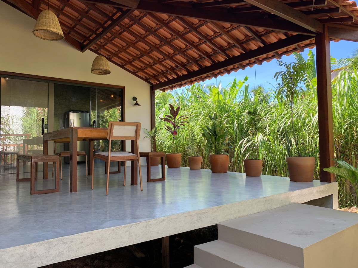 ✨ Casa Poema, boêmia com charme Bali, a apenas 3 minutos da praia. Varanda ampla com redes para relaxar, quarto espaçoso com ar-condicionado, ventilador e sofá-cama para maior conforto. A cozinha está totalmente equipada, pronta para preparar sabores inesquecíveis. Localizada no coração de Moreré, perto de tudo, oferece o equilíbrio perfeito entre tranquilidade e praticidade, ideal para dias de descanso e momentos especiais junto ao mar. Perto de tudo que você precisa.🌴🐚