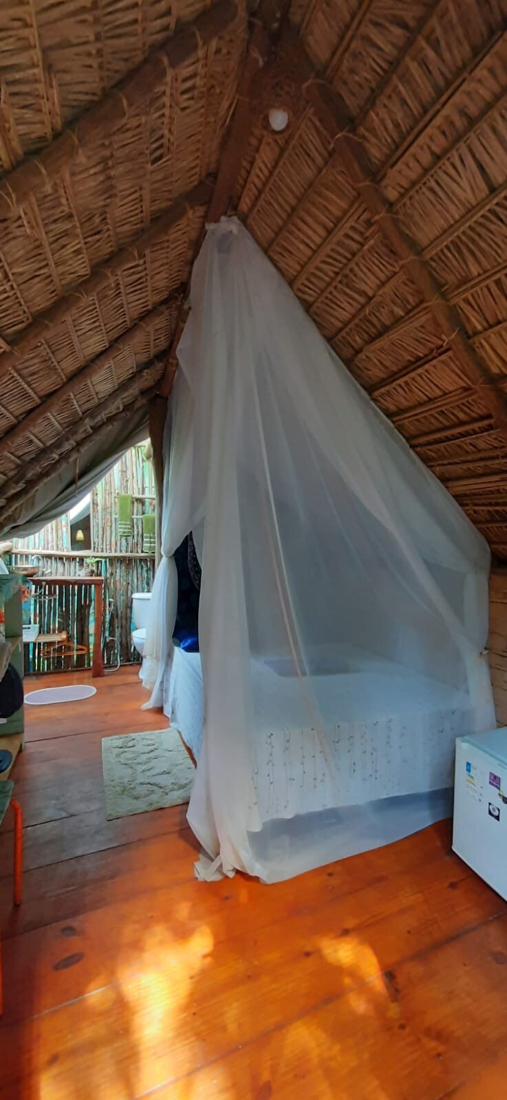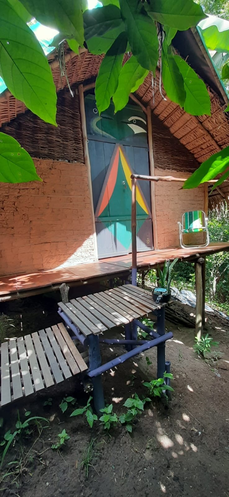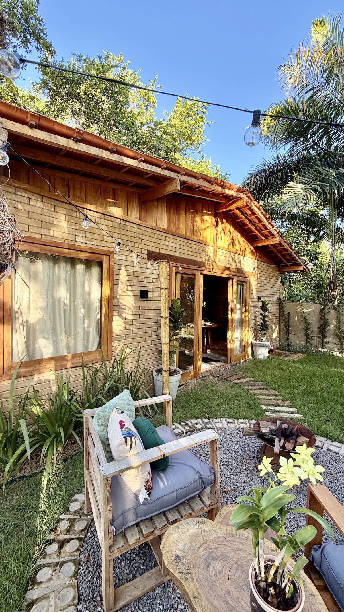 Refúgio na Floresta da ilha de Boipeba. À 800m-Piscinas Naturais do Moreré, 200m-Vila Quilombola Monte Alegre e 3km-Vila de Boipeba. Com a casa feita de barro somos parte da Natureza. O intuito aqui é ser harmônico e se misturar ao espaço. Por isso a casa foi feita com material mais sustentável: madeira, garrafas, vidros e janelas de ônibus e carro. Sanitário seco por câmara compostável, e água que nasce ali e volta pelo círculo de bananeiras. Estar ali pra mim é sentir-se um só com a mãeTerra.