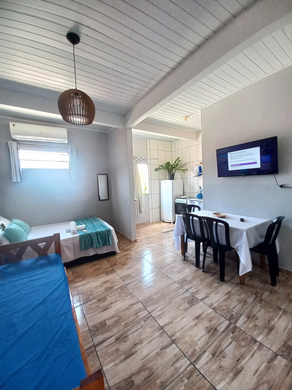 Em Morro de São Paulo, luminoso mini-apartamento, tipo loft, recém reformado e decorato, totalmente equipado; cozinha completa, Smart TV 32`, ar condicionado, wi fi e varanda com vista jardim. Perfeito para quem curte vida de praia, localizado na terceira praia a 1 minuto do mar, é o lugar certo para ficar em Morro; perto de supermercados, bares e restaurantes, mas numa tranquila área residencial.