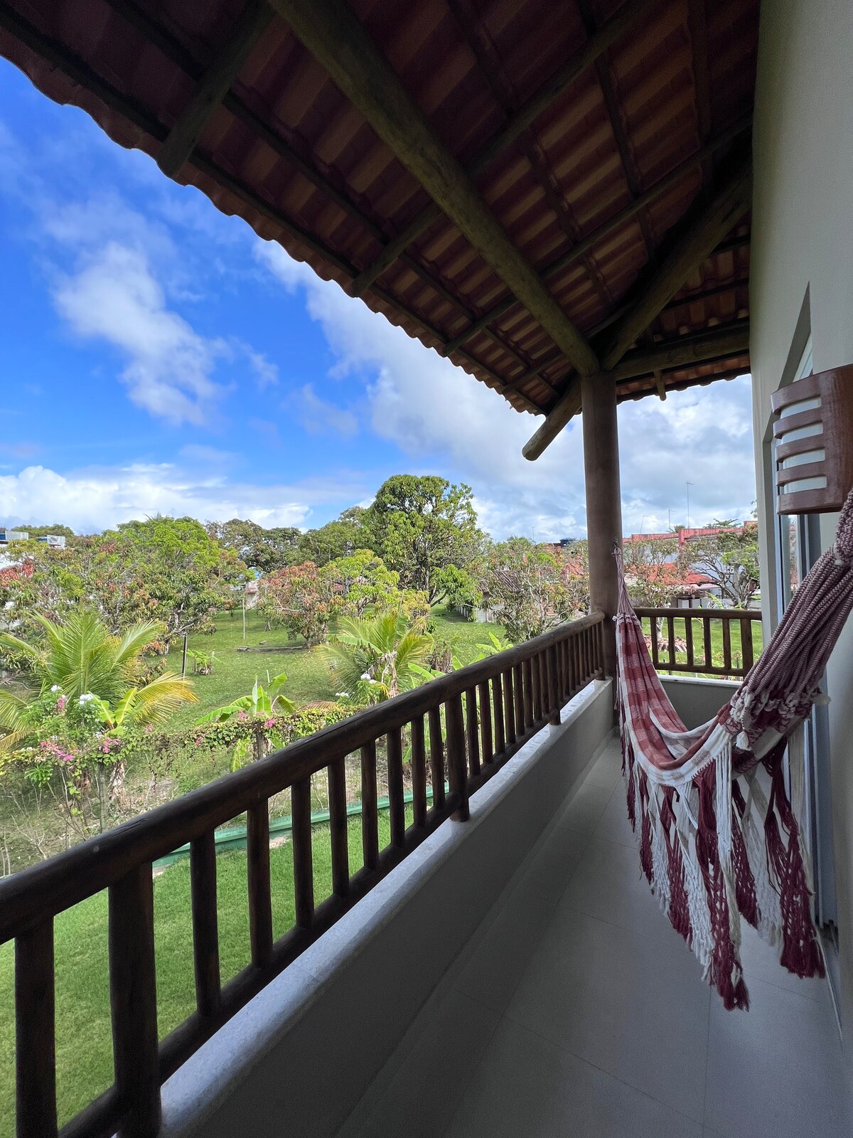 Estamos situados numa rua considerada tranquila e perto das trilhas para as praias da Cueira, Tassimirim e Banheiro e Mirante da Caixa d'água. O apartamento é circular/oval, bastante ventilado e com uma excelente vista para uma área florestal repleta de pássaros. Nosso espaço está localizado próximo à algumas casas, o que torna o local não tão isolado. Além de estar a 20 (vinte) metros de um estúdio de Pilates e a um provedor de comidas (P.F.). A hospedaria também fica perto de uma padaria.