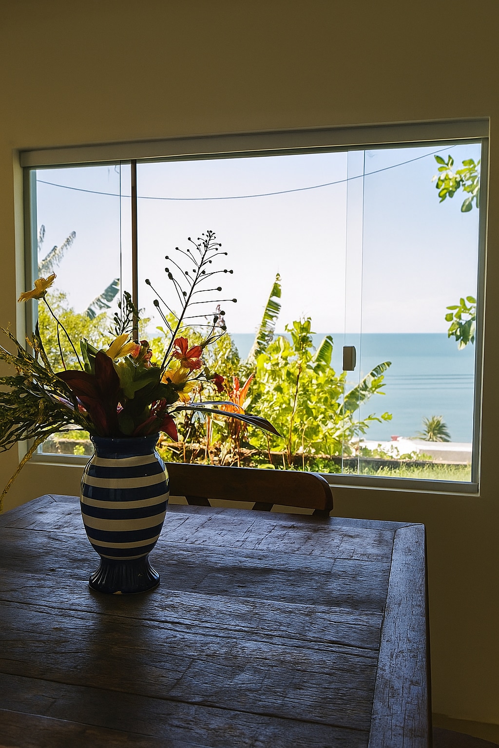 No alto do Morro de São Paulo, o Canto das Águas é um refúgio com vista para o mar e o pôr do sol de tirar o fôlego. Da praça central até aqui é uma caminhada de 15–20 min (1km), com algumas ladeiras e degraus. A recompensa é toda beleza natural exclusiva e privacidade. Ideal para casais, amigos ou viajantes solo que querem acordar com o azul do oceano. Estamos a 80m acima do nível do mar, com acesso do condomínio às trilhas para as praias Porto de Cima, Ponta da Pedra, Praia da Argila e Gamboa.