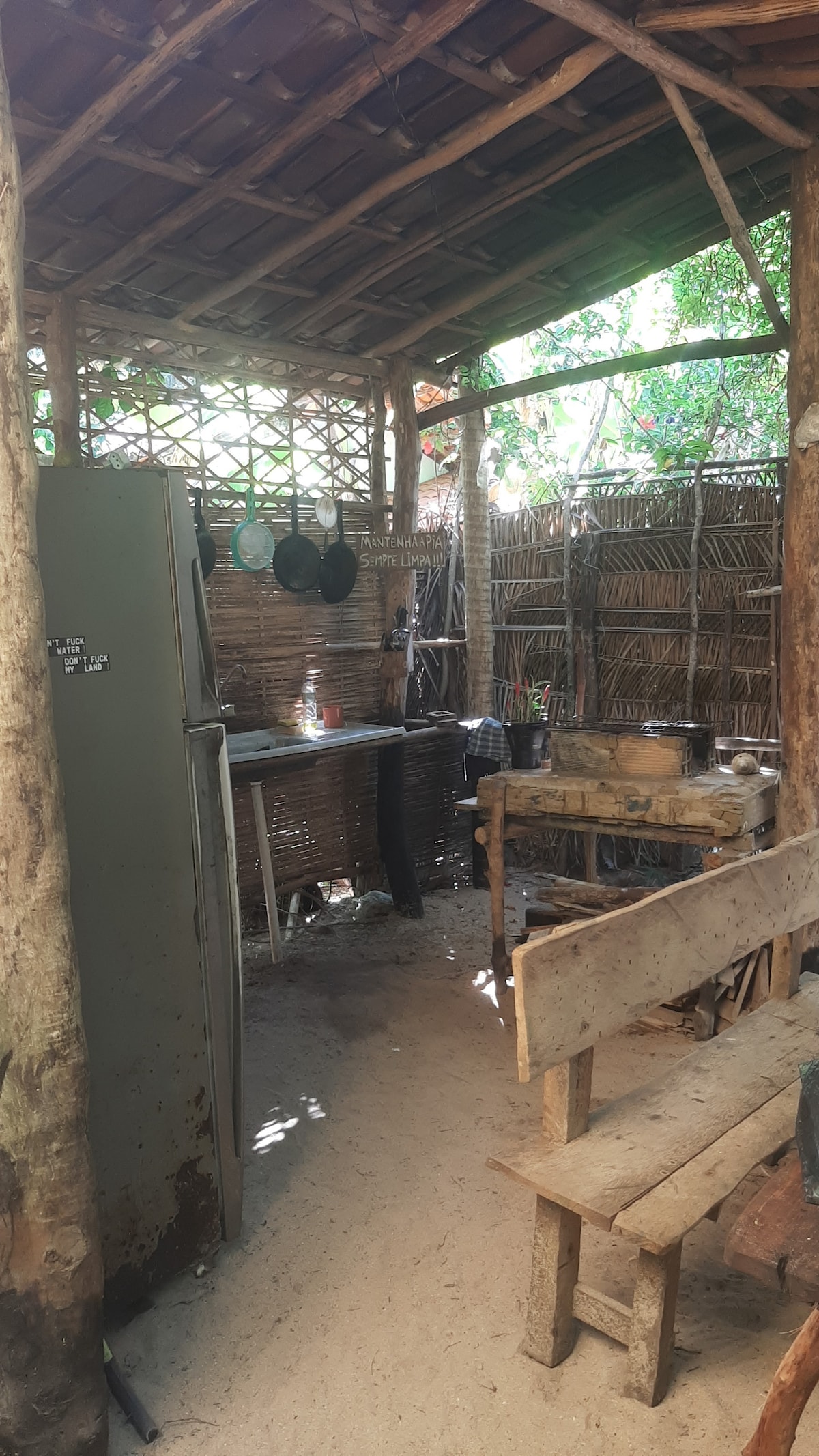 Refúgio na Floresta da ilha de Boipeba. À 800m-Piscinas Naturais do Moreré, 200m-Vila Quilombola Monte Alegre e 3km-Vila de Boipeba. Com a casa feita de barro somos parte da Natureza. O intuito aqui é ser harmônico e se misturar ao espaço. Por isso a casa foi feita com material mais sustentável: madeira, garrafas, vidros e janelas de ônibus e carro. Sanitário seco por câmara compostável, e água que nasce ali e volta pelo círculo de bananeiras. Estar ali pra mim é sentir-se um só com a mãeTerra.